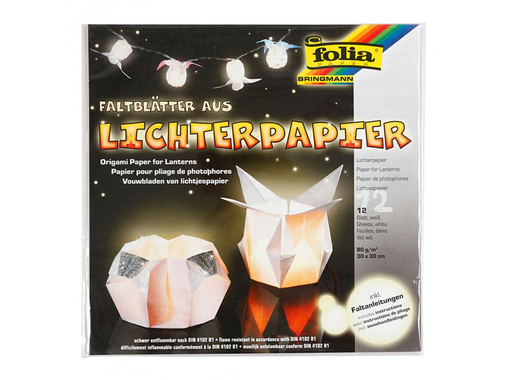 Vonzó, félig átlátszó origami papír, amely lángálló anyagból készült. Alkalmas kis lámpások hajtogatására, pl. tealámpákhoz vagy kis dekoratív esernyőkhöz egy fényfüzéren. Könnyen színezhető és díszíthető. Hajtogatási útmutatót tartalmaz.