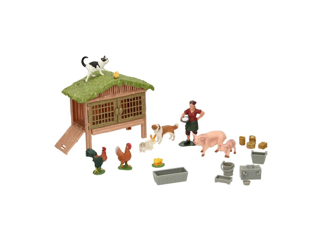 A nyúl ólak játékkészlet tartalmaz egy malacot, malacot, macskát, kutyát, kakast, csirkét, csibéket, nyulakat, a gazda feleségét és tartozékokat. A készlet 3 éves kortól alkalmas, és segíti az állatok felismerését és megnevezését.
