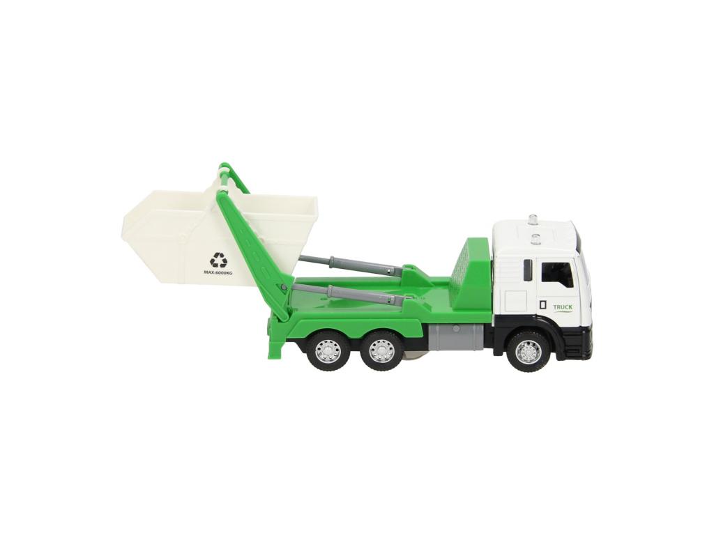 Szemétgyűjtővel és kihúzható funkcióval ellátott teherautó. A teherautó működő fényekkel és zenével, valamint mozgó szemétgyűjtővel rendelkezik. A teherautó 3 éves kortól alkalmas.