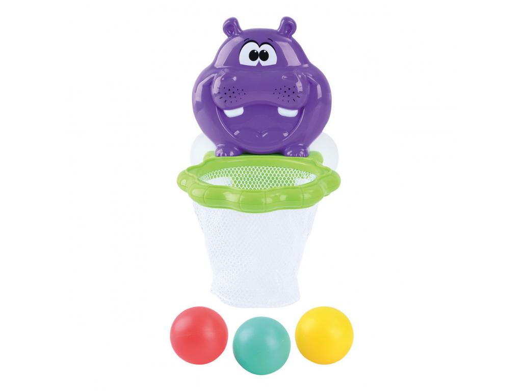 Itt jön a szorgos víziló, hogy a fürdési időt szórakoztatóbbá és érdekesebbé tegye a kisgyermek számára. Mostantól fürdés közben slam dunket játszhatnak. A játék egy víziló arcát ábrázolja, és egy hálóval ellátott gyűrű van hozzáerősítve, amely a mellékelt poharaknak köszönhetően a fürdőszoba falához rögzíthető. Ez a játékkészlet három labdát is tartalmaz, amelyeket a gyerekek a víziló gyűrűbe tunkolhatnak. A víziló arca aranyos és élénk lila színű. Vidám arca van, és a piros, két foggal ellátott szája még aranyosabbá teszi. A hálóval ellátott forgó gyűrű kék színű, a labdák pedig zöld, sárga és rózsaszínűek. Ha a gyerekek utálják a fürdési időt, ez az érdekes slambuc ellenállhatatlanná teszi számukra a fürdési időt - alig várják majd, hogy a fürdőszobában tölthessék az időt. Ez a fürdőjáték érdekes ajándék a kisgyermekeknek, és bármilyen alkalomra vagy bulira adható. A Hoop & Dunk Bath Hippo fürdőjáték 12 hónapos kortól ajánlott.