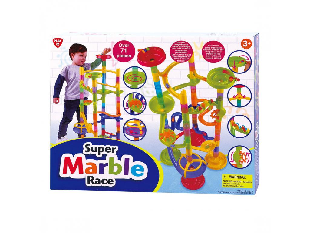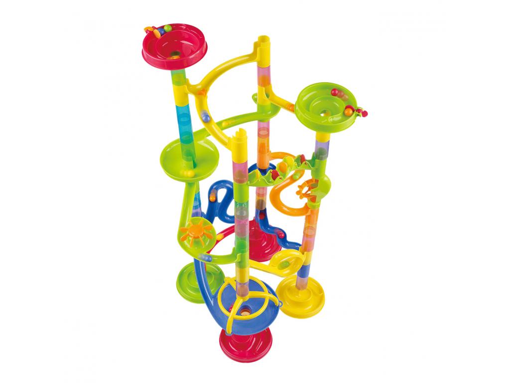 Építsd meg a saját golyópályádat ezzel a színes készlettel. A készlet 71 darabból áll, amelyekkel te magad is látványos pályát hozhatsz létre. A készlet 3 éves kortól alkalmas.