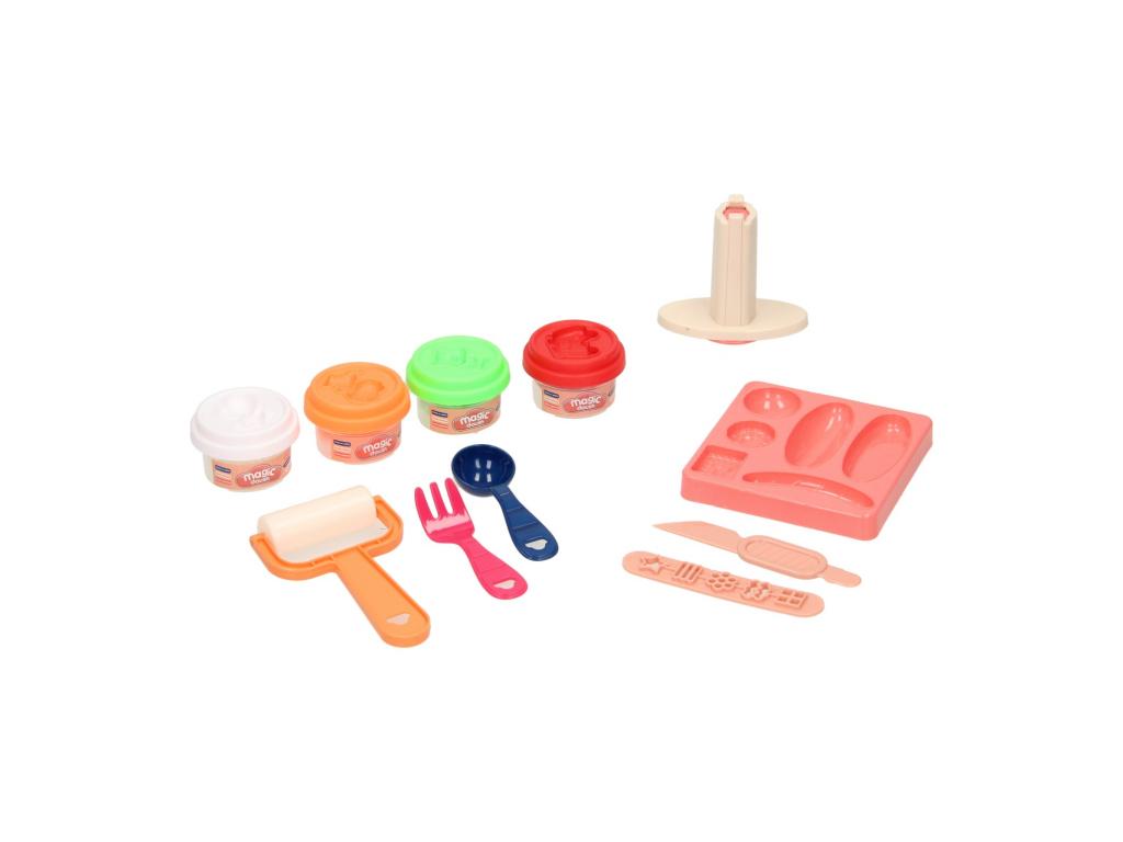 Gyurmakészlet, amellyel finom szendvicset készíthetsz. A 11 darabos készlet 4 agyagszínből, különböző formákból és szerszámokból áll. Alkalmas 3 éves kortól kezdődően.