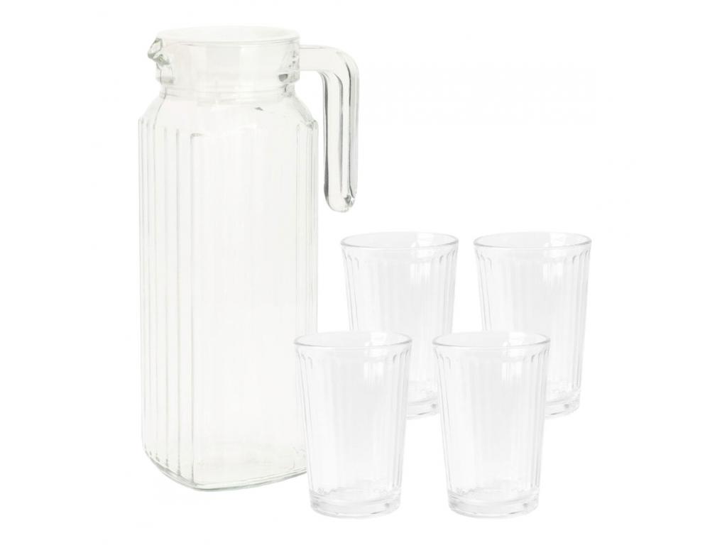 5 darabos készlet, amely 4 ivópohárból (200 ml) és 1 vizes kancsóból (1100 ml) áll.