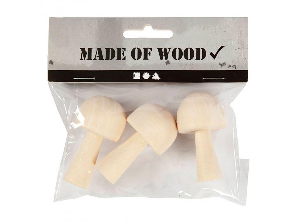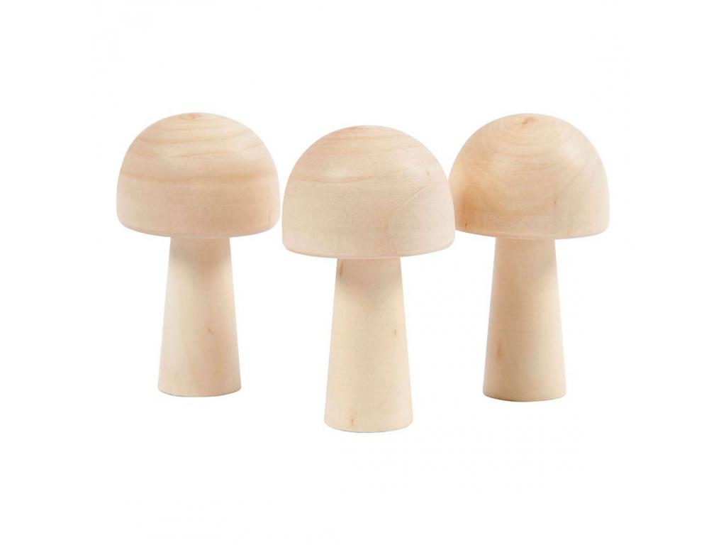 Világos fából készült gombák. A gombák könnyen díszíthetők Plus Colour akrilfestékkel, faégetéssel stb., de ideálisak ragacsos alappal és miniatűr üveggolyókkal, hópelyhekkel, csillámokkal stb. való díszítésre is.
