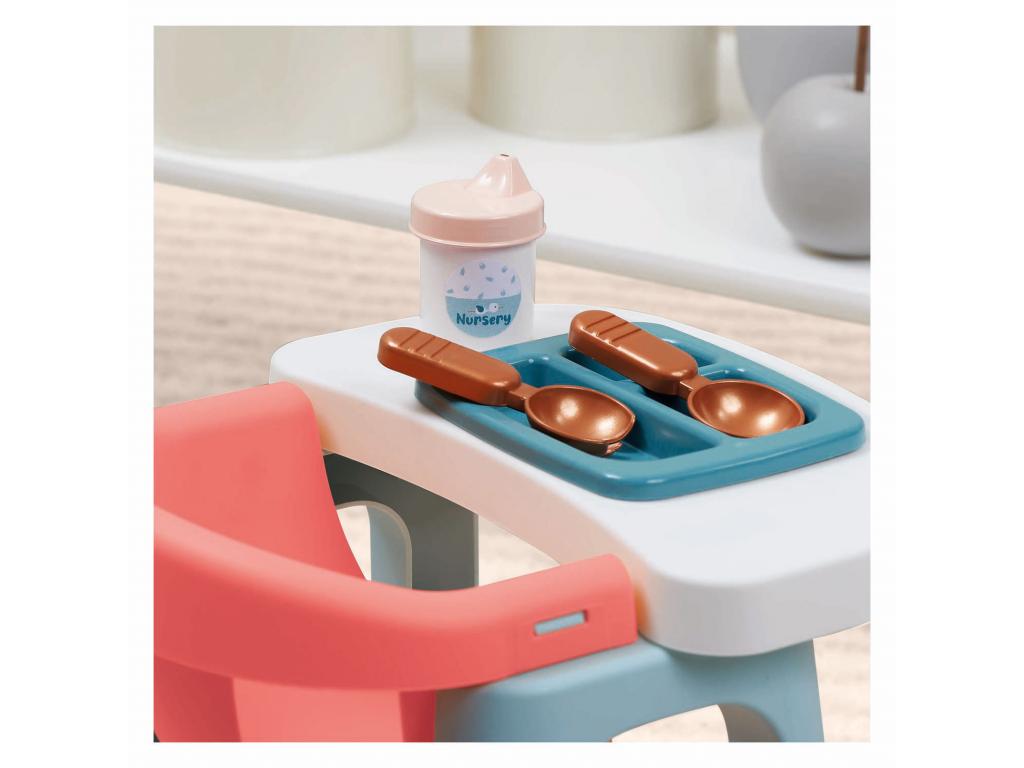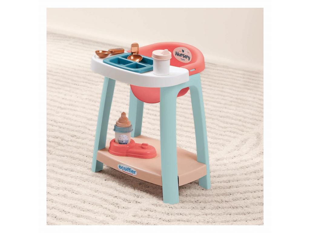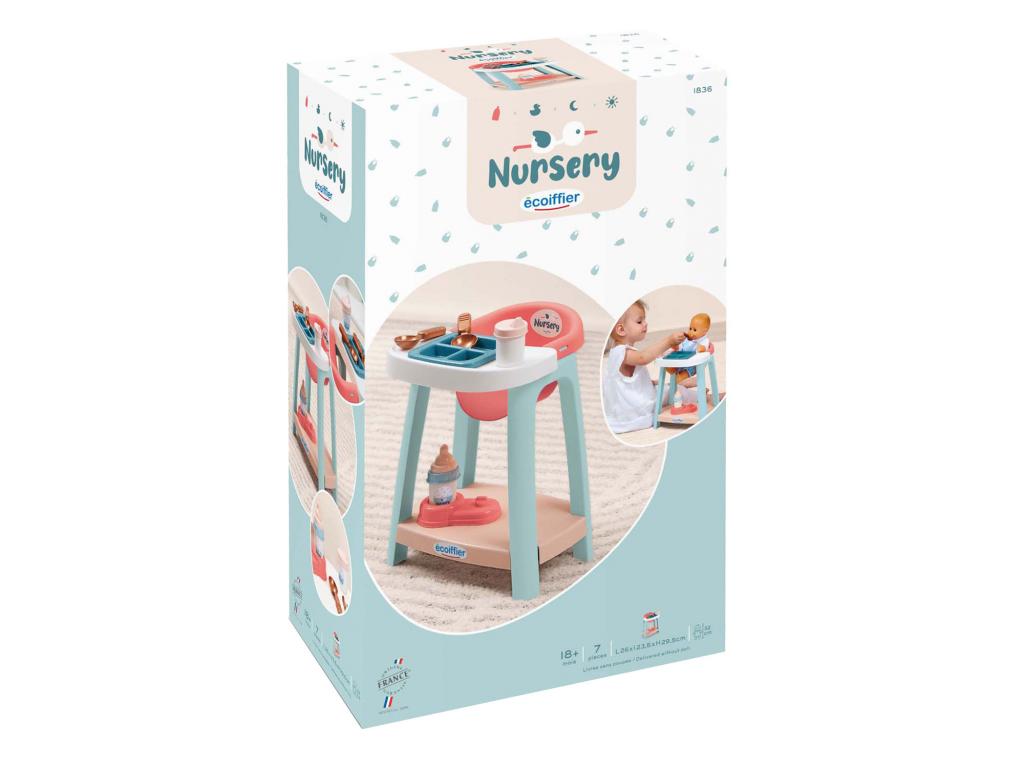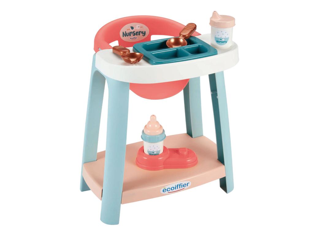Az Ecoiffier ápolószék egy olyan játékkészlet, amely lehetővé teszi a gyermekek számára, hogy a gondozó szerepébe bújjanak. A készlet tartalmaz egy kb. 32 cm-es baba számára alkalmas etetőszéket, kiegészítve olyan kiegészítőkkel, mint a tányér, evőeszközök és egy cumisüveg az etetés szimulálásához. Ezek a játékok ösztönzik a fantáziadús játékot, és elősegítik a gyermekek szociális és gondozási készségeit. A szék stabil, biztonságos műanyagból készült, és 18 hónapos kortól alkalmas.