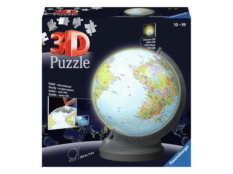 Egyedülálló háromdimenziós kirakós móka - ez a Ravensburger 3D-s kirakós játékai! A masszív műanyag darabok tökéletesen illeszkednek egymáshoz. Így 54 ívelt darabból ragasztó használata nélkül építheted meg ezt az egyedülálló Földet a fénnyel!