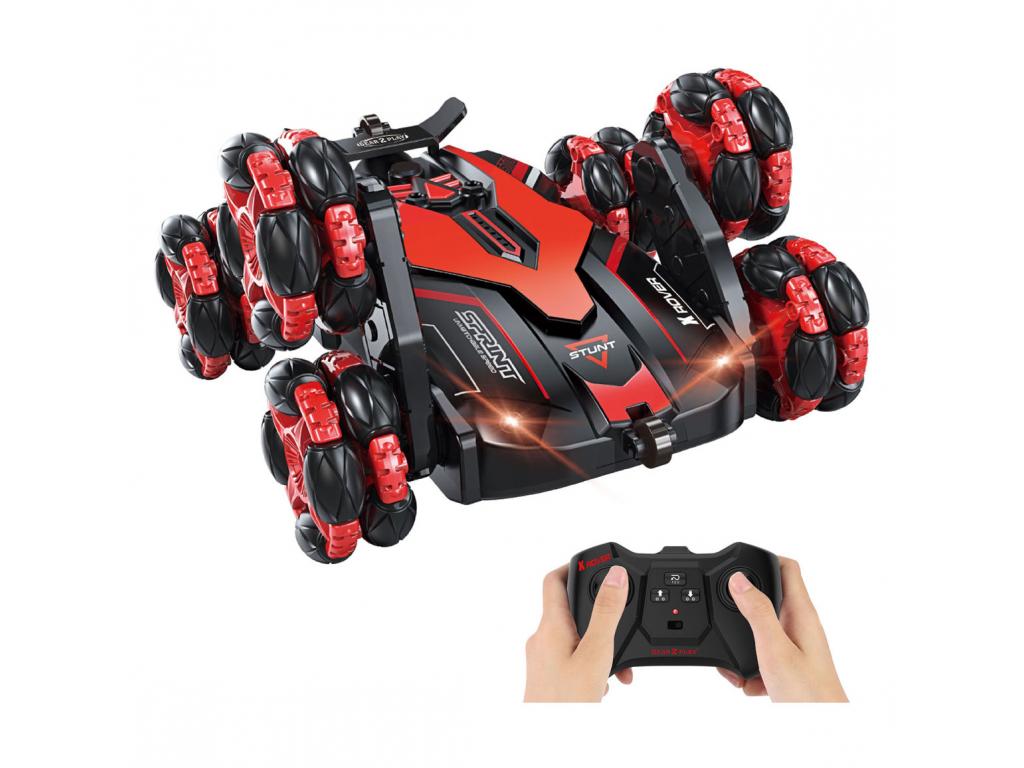A végső átalakuló kaszkadőr autó, akkumulátorral és USB töltővel együtt! Híres a tévéből! A 2,4 GHz-es távirányítású, teljes funkcionalitású X Rover robusztus, gyors és manőverező. Semmi sem túl őrült ennek a végső RC kaszkadőrautónak, hiszen univerzális kerekeinek köszönhetően minden felületen megbirkózik. A vezérlővel a kaszkadőrautót a leggyorsabb és legmenőbb trükkökre késztetheted. Így képes 360 fokot fordulni, driftelni és szaltót csinálni, majd a másik oldalon folytatni a vezetést. Egy gombnyomással, a Világító fényszórókkal és a demo gombbal az autó megmutatja, hogy mire képes a kaszkadőr autó.
