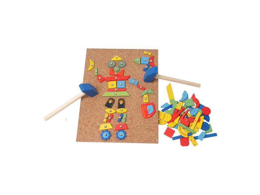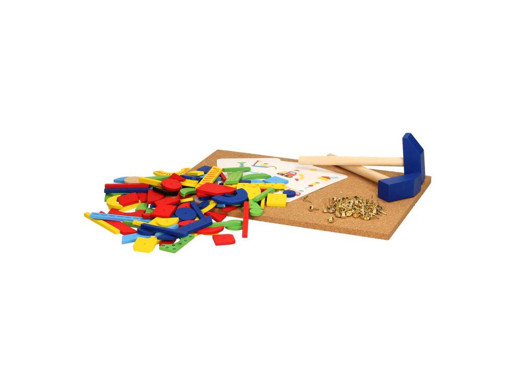 Kalapácsjáték 229 darabból, parafa táblával és 2 fakalapáccsal.