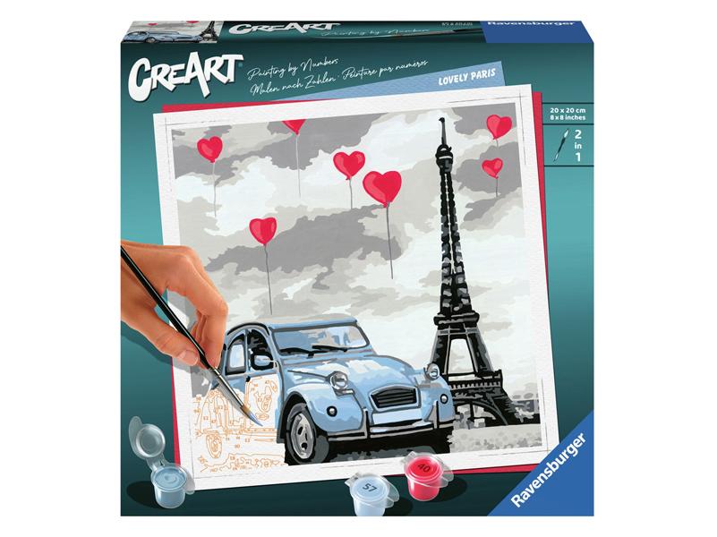 Színezd ki a CreArt Paris alkotásait! Festés számok szerint a Ravensburgertől - bárki tud festeni! A számok alapján festés egyszerű festési technikájának köszönhetően gyerekjáték felébreszteni a benned rejlő művészt! A szabad színezőfelületeknek köszönhetően egy 20,00 cm x 20,00 cm méretű, kicsi és gyönyörű műalkotást készíthetsz. A finom színárnyalatok elegáns színátmenetet és árnyjátékot biztosítanak. Csomagold ki és kezdj neki Párizs képének!