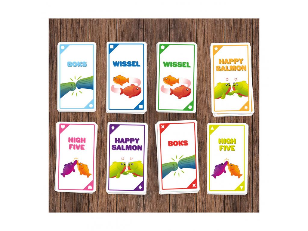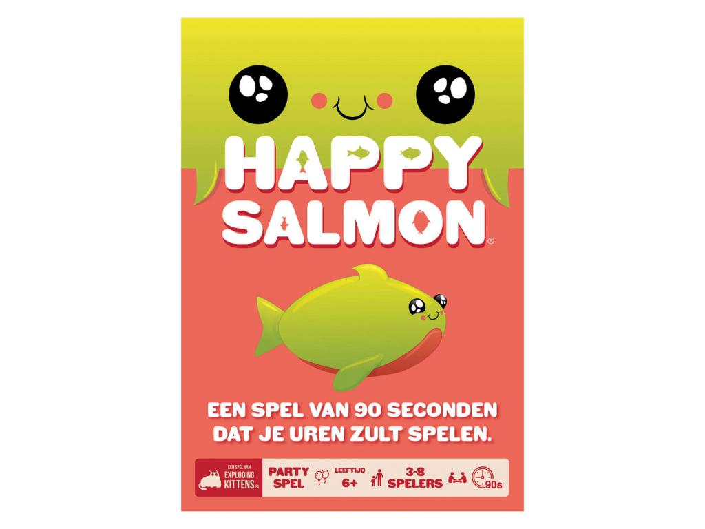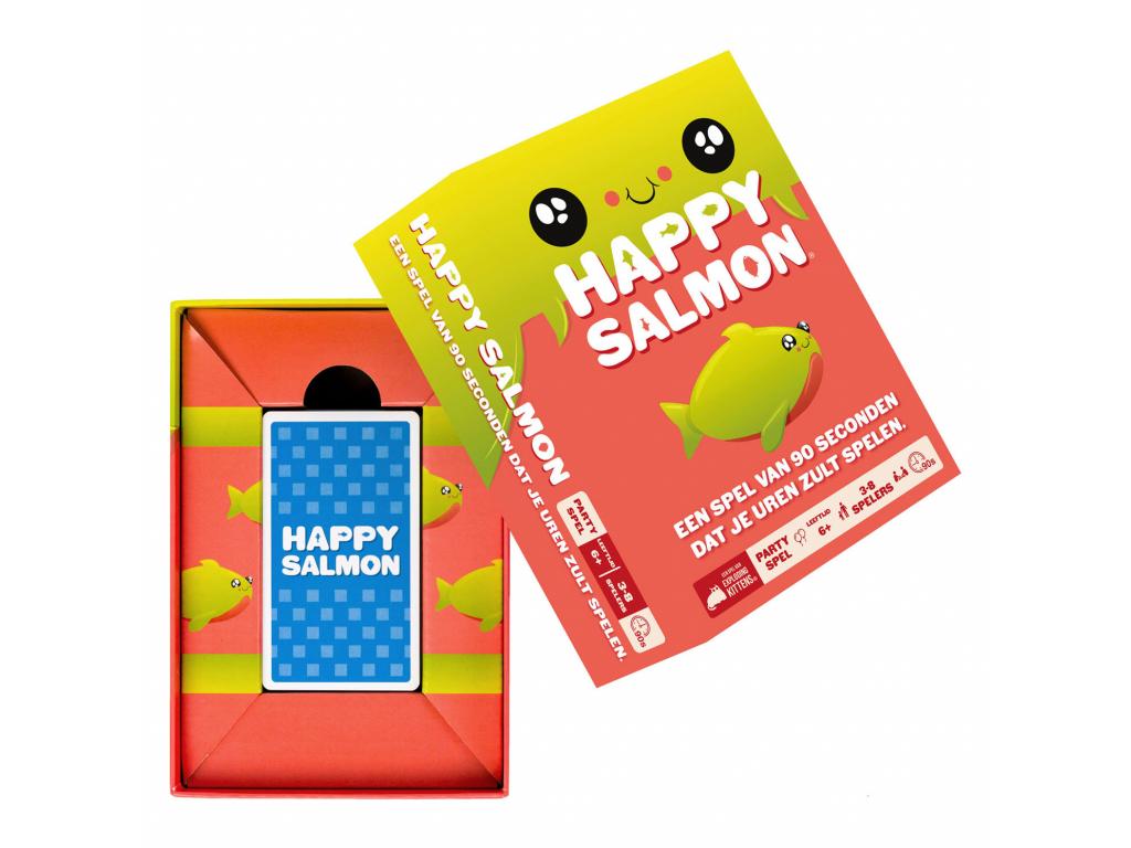 A Happy Salmon egy interaktív partijáték minden korosztály számára. A Happy Salmon játék során megpróbálsz minél gyorsabban megszabadulni a kártyáidtól úgy, hogy találsz egy másik játékost, akinek ugyanazt a műveletet kell végrehajtania. Ha megtaláltátok, együtt hajtjátok végre a műveletet. Ezután eldobhatjátok a kártyákat. Ily módon adtok egymásnak pacsi, ökölcsapás, a csak boldog lazac mozdulat vagy helyet cseréltek egymással. Aki ebben a káoszban előbb megszabadul a kártyáitól, az nyer! A Happy Salmon egy egyszerű és szórakoztató partijáték, amelyet pillanatok alatt megtanulhatsz, de órákig játszhatsz vele. Mindenki tud és akar is csatlakozni!