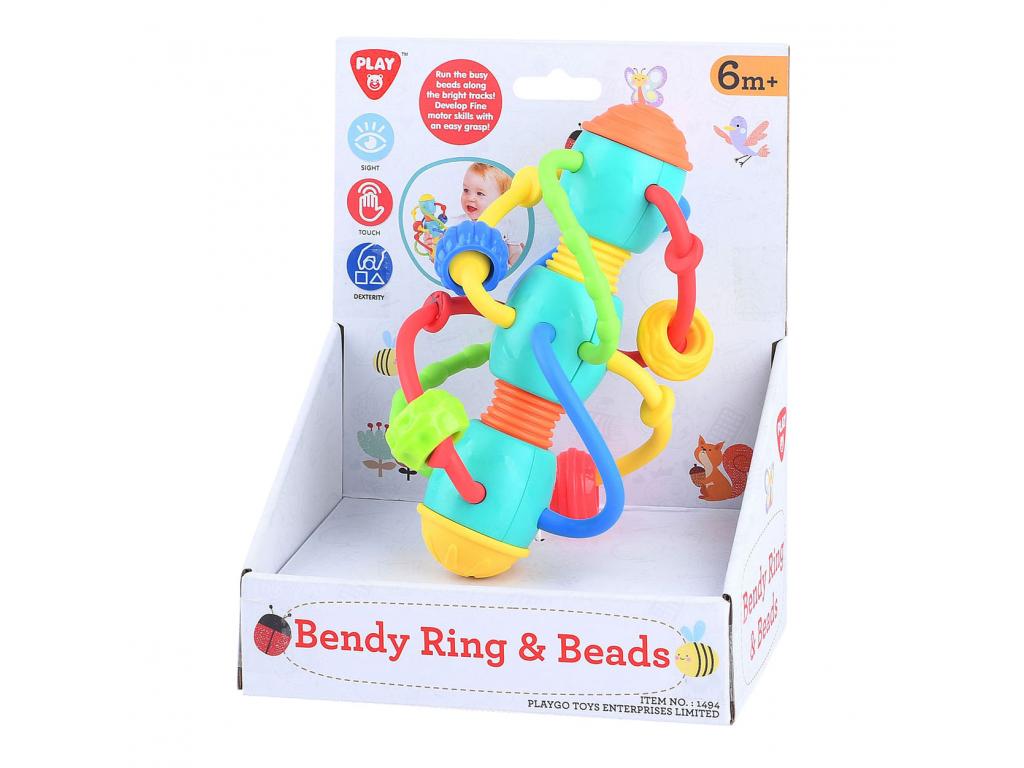 Bébi spirálcsörgő gyűrűkkel és gyöngyökkel