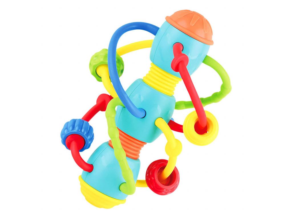 Micsoda színes csörgő spirál alakú fogzási gyűrűkkel a kicsinek. A gumi fogzási gyűrűk enyhítik a fogzási fájdalmat. Maga a csörgő serkenti a szem-kéz koordinációt. Alkalmas 6 hónapos és idősebb gyermekek számára.