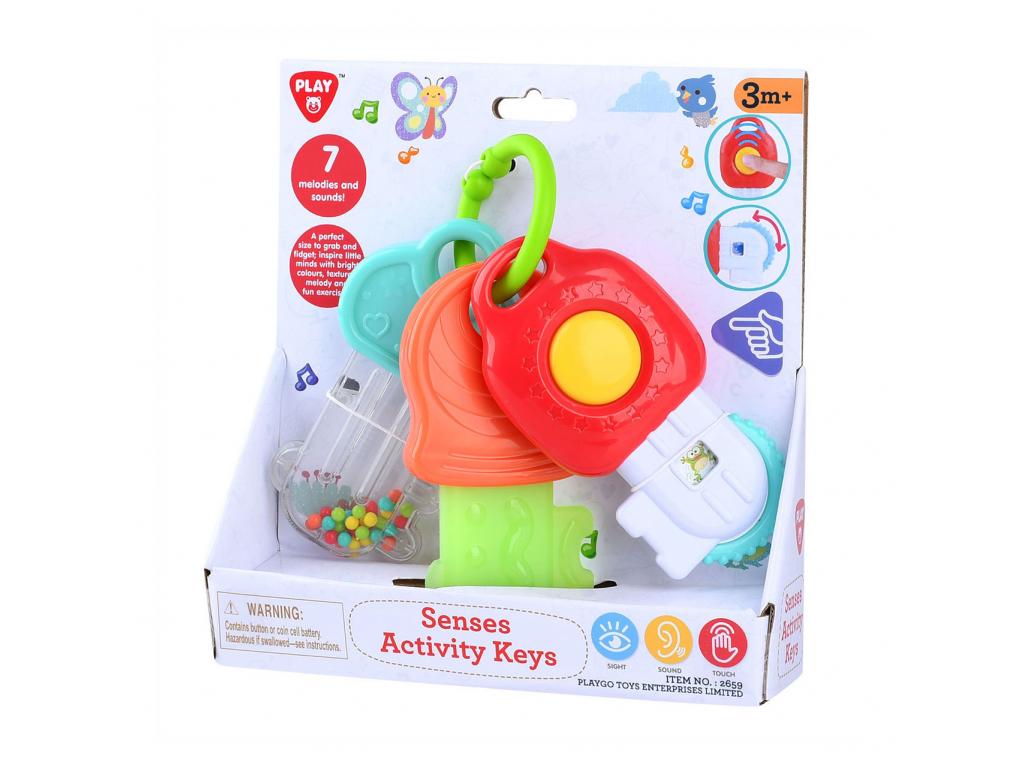 Ösztönözze gyermeke fejlődését ezekkel a színes kulcsokkal. Minden kulcsnak van egy formája és funkciója. A piros billentyűhöz egy gomb is tartozik, amellyel 7 különböző dallamot lehet lejátszani. Alkalmas 3 hónapos kortól.