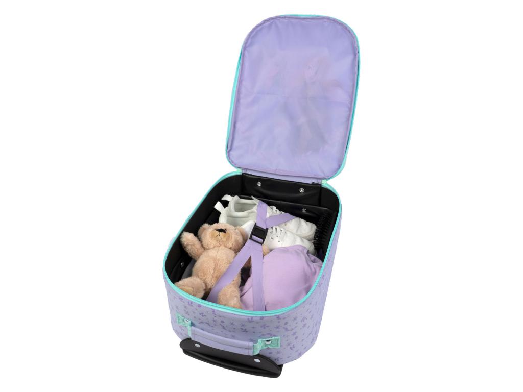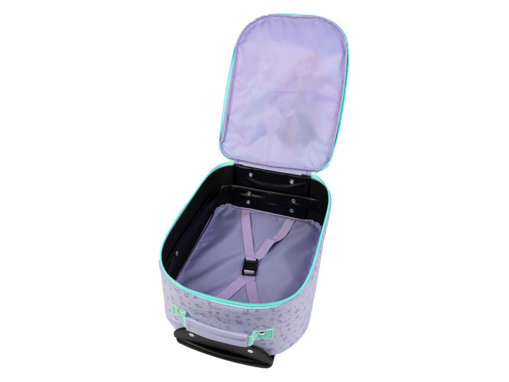 Gyermekkocsi Frozen nyomtatással. Szín: lila/kék. Poliészterből készült. Méretek: 38 x 27 x 13,5 centiméter.