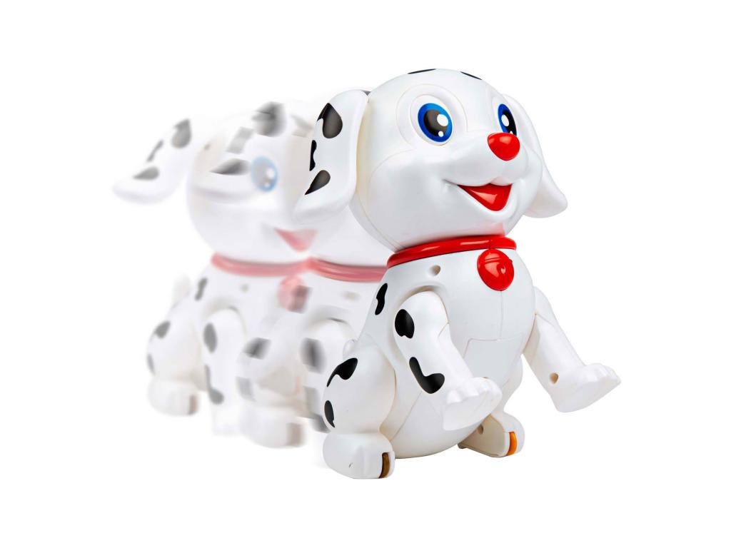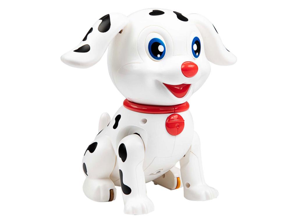 Elektromos, interaktív kutya fénnyel és hanggal. Alkalmas 3 éves kortól. A kutya mérete 18,5 x 14,5 x 18 cm.