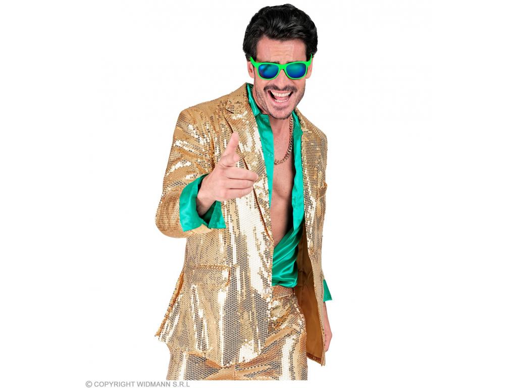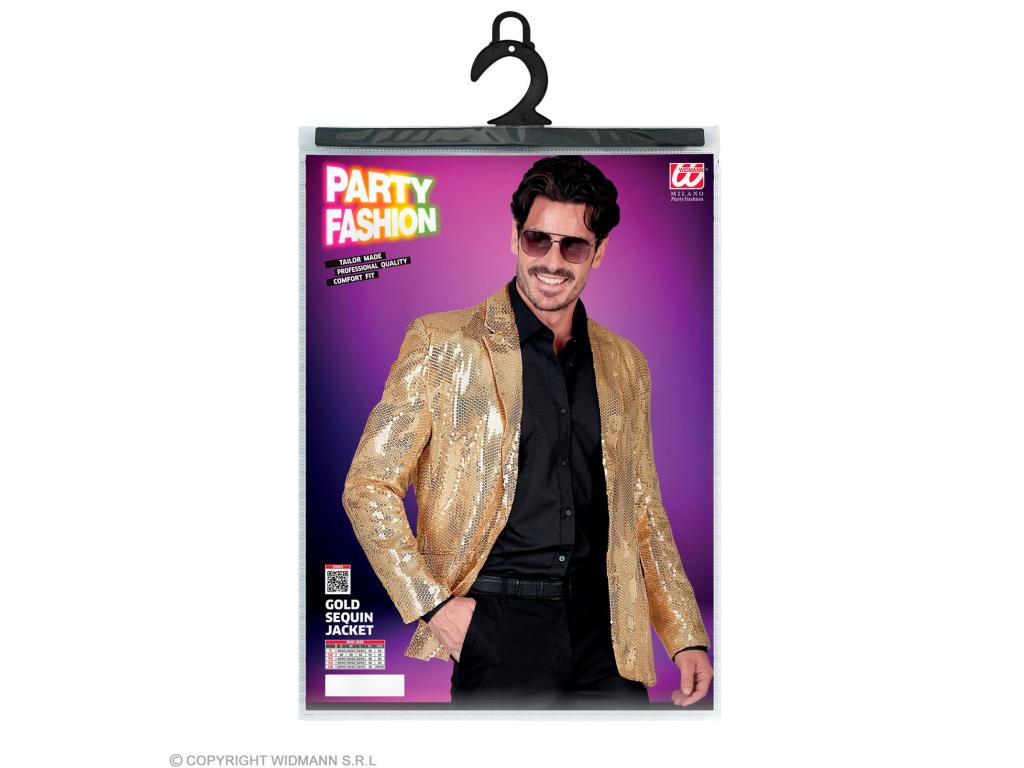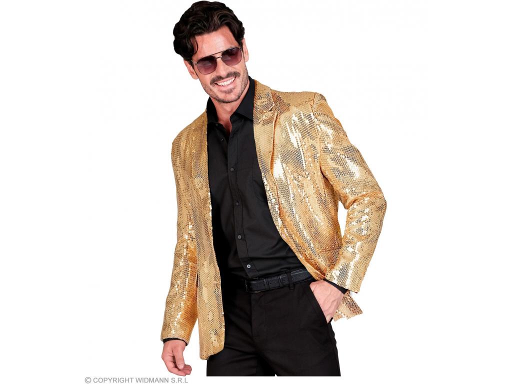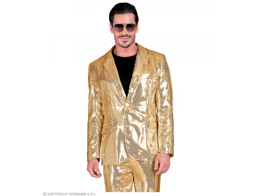 A Party zakó csillogó arany színű férfi jelmez leírása: