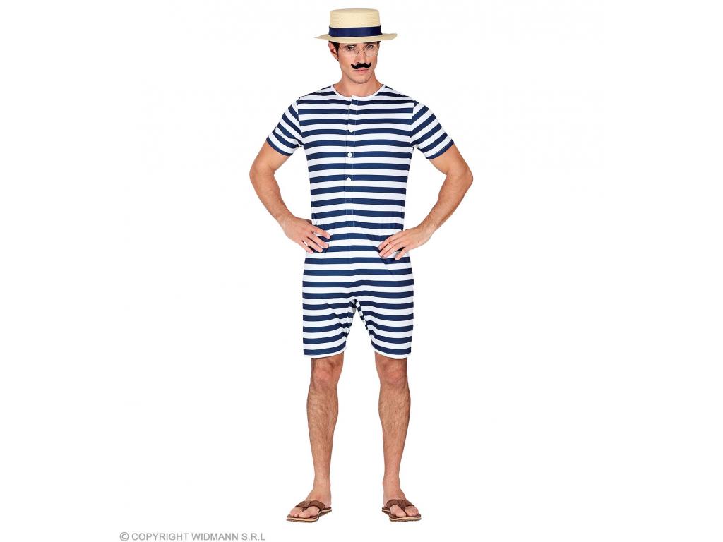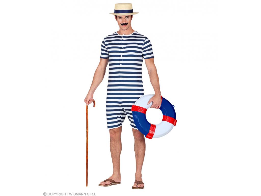 Retro fürdőruha kék fehér csíkos férfi jelmez