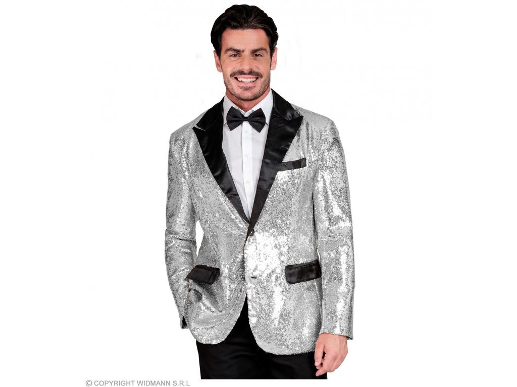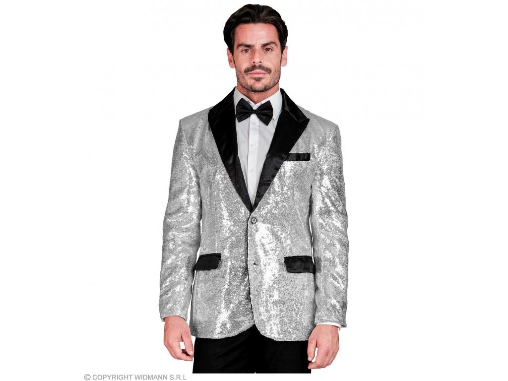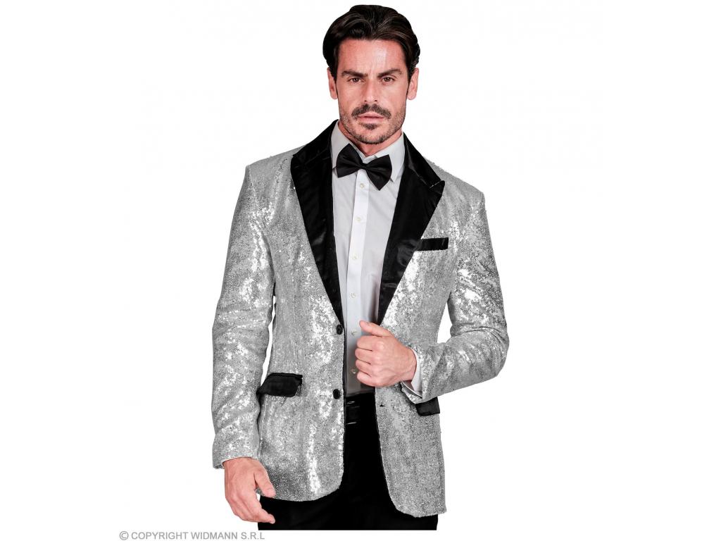 Party szatén zakó csillogó ezüst fekete színű férfi jelmez