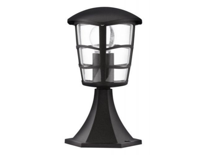 Az ALORIA állólámpa modern lámpás dizájnnal rendelkezik, fekete öntött alumínium testtel és átlátszó műanyag panelekből készült búrával. A dizájn lehetővé teszi, hogy közvetlen rálátás legyen a fényforrásra. A lámpa kültéri használatra alkalmas, mivel IP44 védelemmel rendelkezik a fröccsenő víz ellen, klasszikus stílusa pedig szépen kiegészíti a kültéri teret. A képen látható fényforrás nem tartozék a termékhez. A termék E27-es foglalattal rendelkezik, amely E27-es fényforrást igényel.