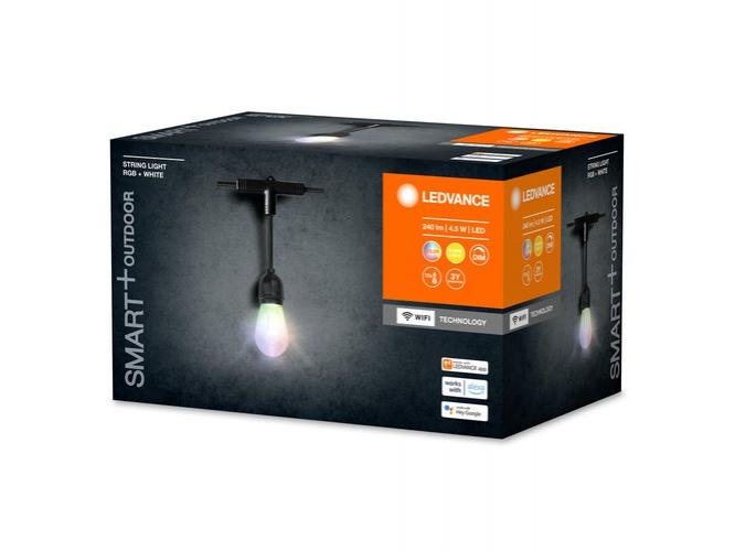 Kültéri intelligens izzósor 12 égővel. Termék jellemzők: vezérelhető a LEDVANCE SMART+ WiFi alkalmazással (minimum Android 4.4 vagy iOS 10.0 szükséges). Szóvezérlési lehetőség: Google Asszisztens vagy Amazon Alexa. RGB színvezérlés, hozzávetőlegesen 16 millió szín variáció állítható. Dimmelhető. Hálózati protokoll: WiFi. Védelmi fokozat: IP44. Termék előnyök: könnyű és gyors telepítés. Színes kerti világítás intelligens vezérlési lehetőséggel. Magas minőségű anyagok. Csak dugja be az EU dugót. Alkalmazási területek: Általános világítás. Kertek. Teraszok, erkélyek. Eszközök / Kiegészítők: A LEDVANCE SMART + WiFi alkalmazáson keresztüli vezérléshez okostelefonra vagy táblagépre van szükség. Az alkalmazáson keresztüli vagy szóvezérléses vezérléshez kompatibilis Okos otthon rendszer szükséges.