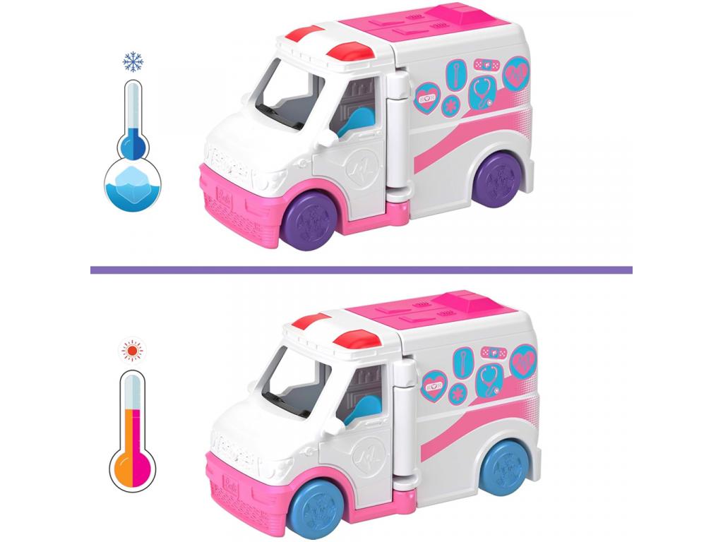 A készlet egy mini Barbie figurát és egy vagány mentőautót tartalmaz, amely különleges funkciójával garantáltan lenyűgözi a kicsiket: a jármű külső felülete hőmérsékletre reagálva változtatja a színét! Csak hideg vagy meleg vízre van szükség, és máris megjelennek az izgalmas minták, amelyek újabb játékötletekre inspirálnak.