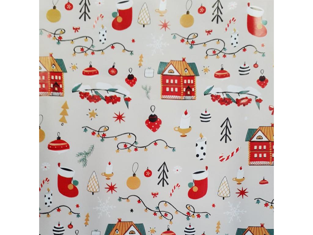 A Piros házikó mintás karácsonyi csomagolópapír igazán bájos és ünnepi választás, amely melegséget és vidámságot csempész az ajándékozás pillanatába. A bézs alapon megjelenő piros házikók, karácsonyfadíszek, gyertyák, zoknik és girlandok részletgazdag mintái a karácsonyi idillt idézik, miközben a hópelyhek és csillagok még varázslatosabbá teszik az összhatást.