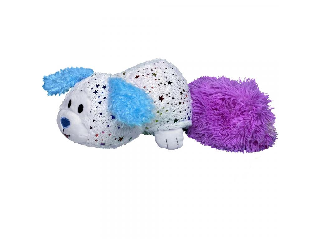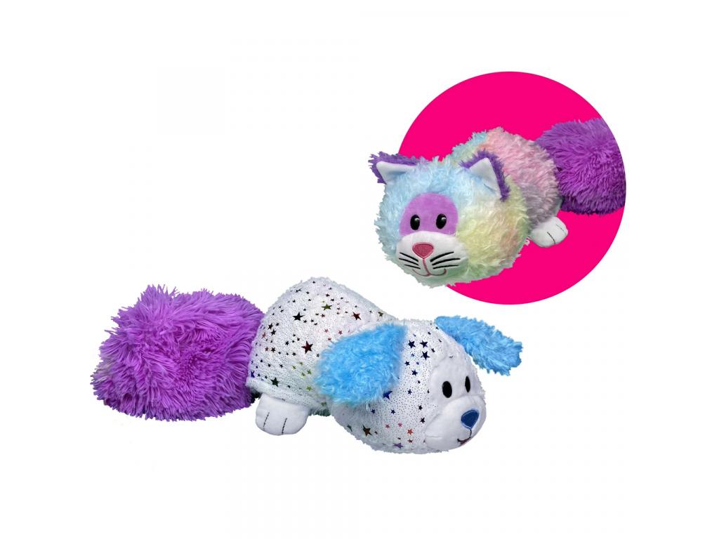 -Kifordítható plüssfigura, amely egy cica és egy csillagmintás kutyus között változtatható