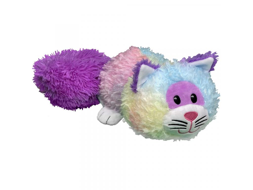 A cica vidám lila, kék és sárga színekben pompázik, míg a csillagkutyi ragyogó csillagmintás bundája igazi varázslatos hangulatot teremt. A barátságos arcok és a bolyhos farok még szerethetőbbé teszik ezt az egyedi plüssfigurát.