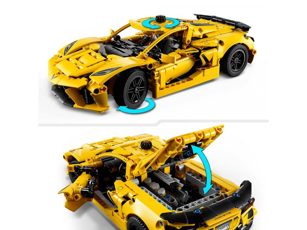 Egy játék autó, rengeteg felfedezésre váró részlettel Ezzel a szettel az ifjú építők megépíthetik a saját Corvette-modelljüket, majd játszhatnak vele, és felfedezhetik az izgalmas funkcióit