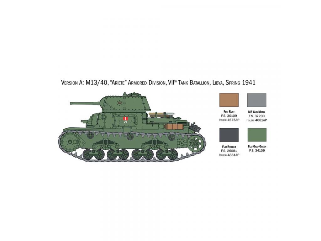 Az Italeri 1/56 méretarányú makettkészlete lehetőséget biztosít arra, hogy a modellezők négy különböző járműverzió közül válasszanak: az M13/40, az M14/41 harckocsik vagy az M40, illetve M41 Semovente önjáró lövegek bármelyike megépíthető. A készlet részletes kidolgozottságú alkatrészeket tartalmaz, amelyek élethű megjelenést biztosítanak. Az összeszerelést követően a makett remek kiegészítője lehet egy diorámának vagy egy történelmi wargame csatának. Négy különböző festési és jelölési opció érhető el, köztük az olasz hadsereg és a német megszálló erők változatai is.