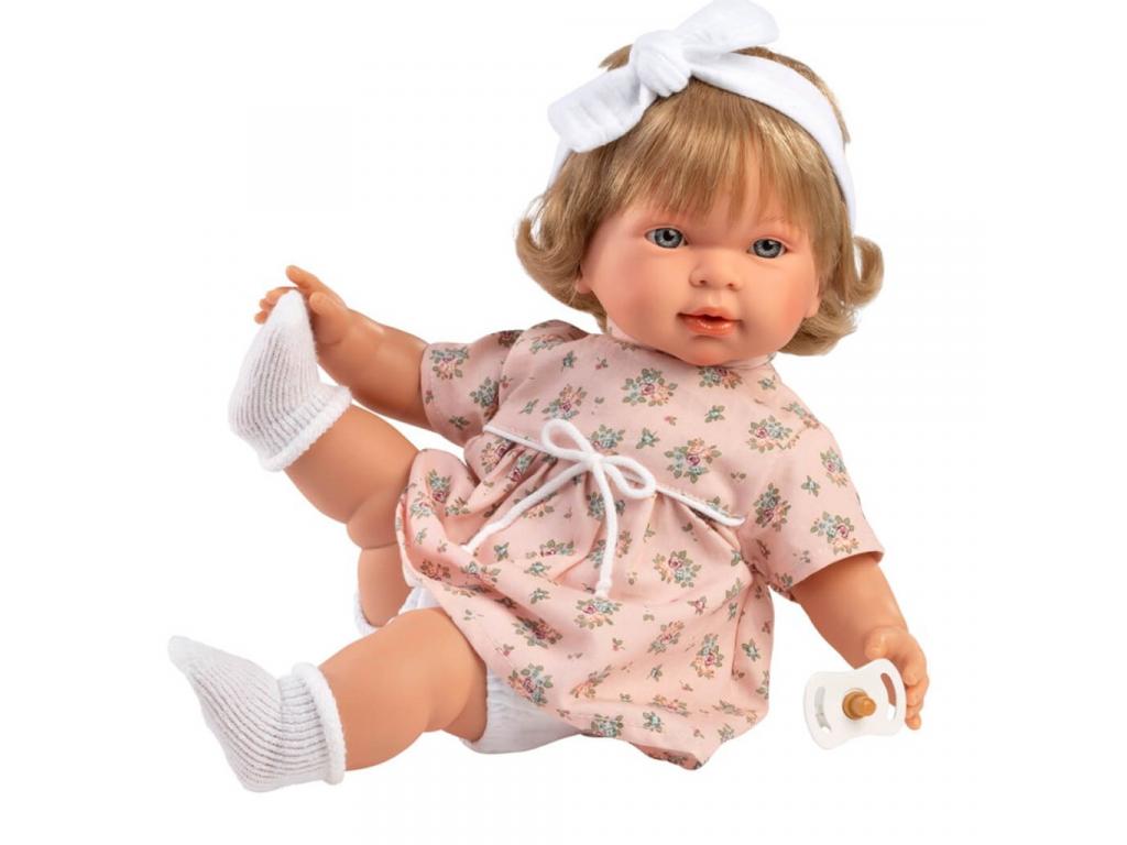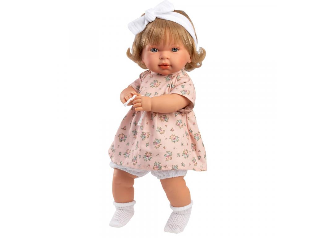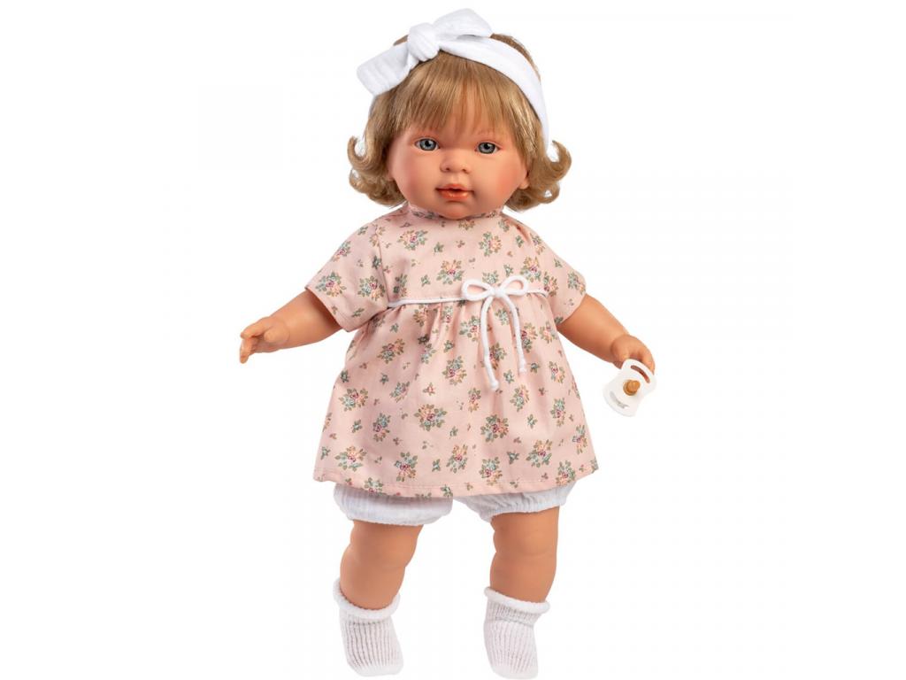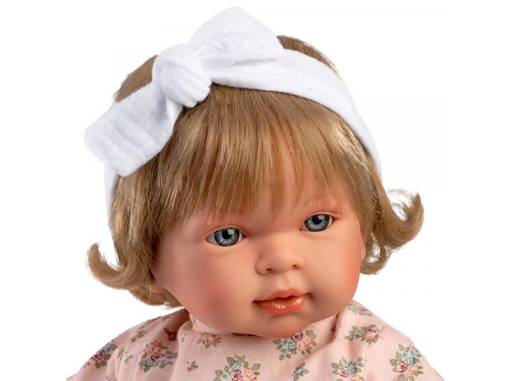 Llorens: Carla 42cm-es síró baba virágos ruhában fejpánttal