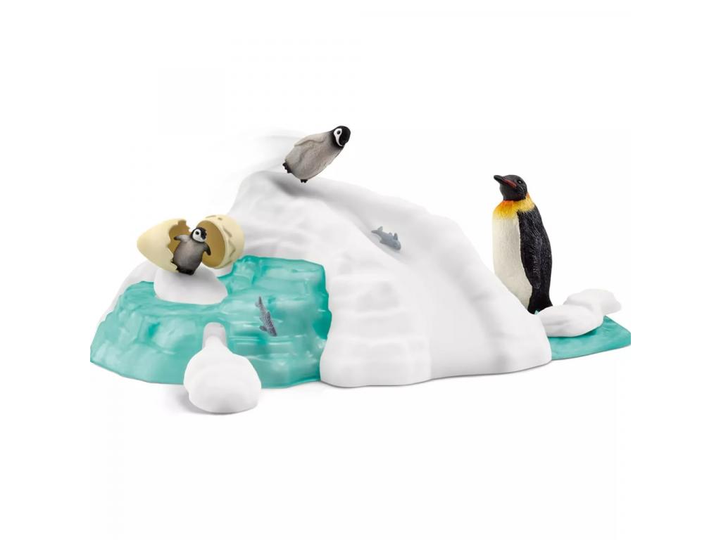 A szett egy felnőtt császárpingvint, két aranyos pingvinfiókát és egy jégtáblát formázó játékelemeket tartalmaz. Az egyik fióka egy tojásból bújik elő, míg a másik éppen vidáman csúszik le a jégcsúszdán, ezzel is még szórakoztatóbbá téve a játékot. A jégtábla átlátszó kékes színű vízfelülete halakkal van díszítve, így a gyerekek könnyedén elképzelhetik, hogyan vadásznak a pingvinek a jeges óceánban.