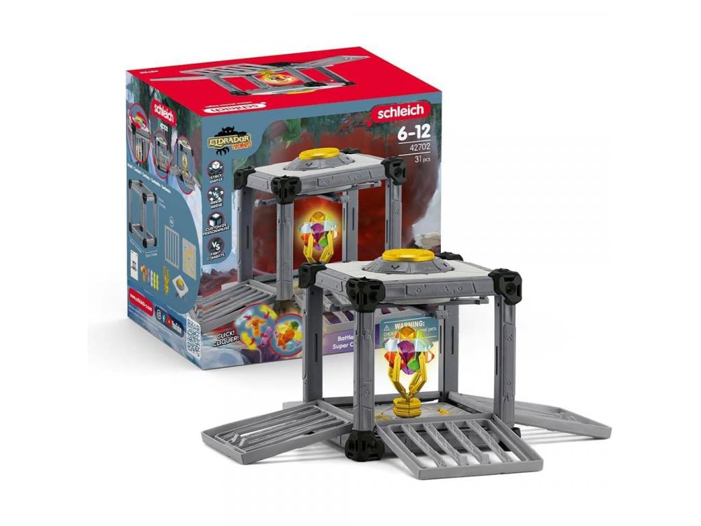 Ez a lenyűgöző játékszett egy masszív erődítménnyé alakítható, amely megvédi a kristályokat a betolakodóktól. A zárható rácsok, a titkos csapdák és az erős szerkezet gondoskodik róla, hogy a kincsek ne kerüljenek illetéktelen kezekbe. Ha azonban valaki ügyesen taktikázik, és képes kikerülni az akadályokat, megszerezheti a legendás szuper kristályokat! A Schleich kiváló minőségű, kézzel festett és részletgazdag kidolgozású játéka tökéletes kiegészítője az Eldrador Creatures világának. A Battlecave más harci szettekkel is kombinálható, így még izgalmasabb és változatosabb csatákat lehet megvívni.