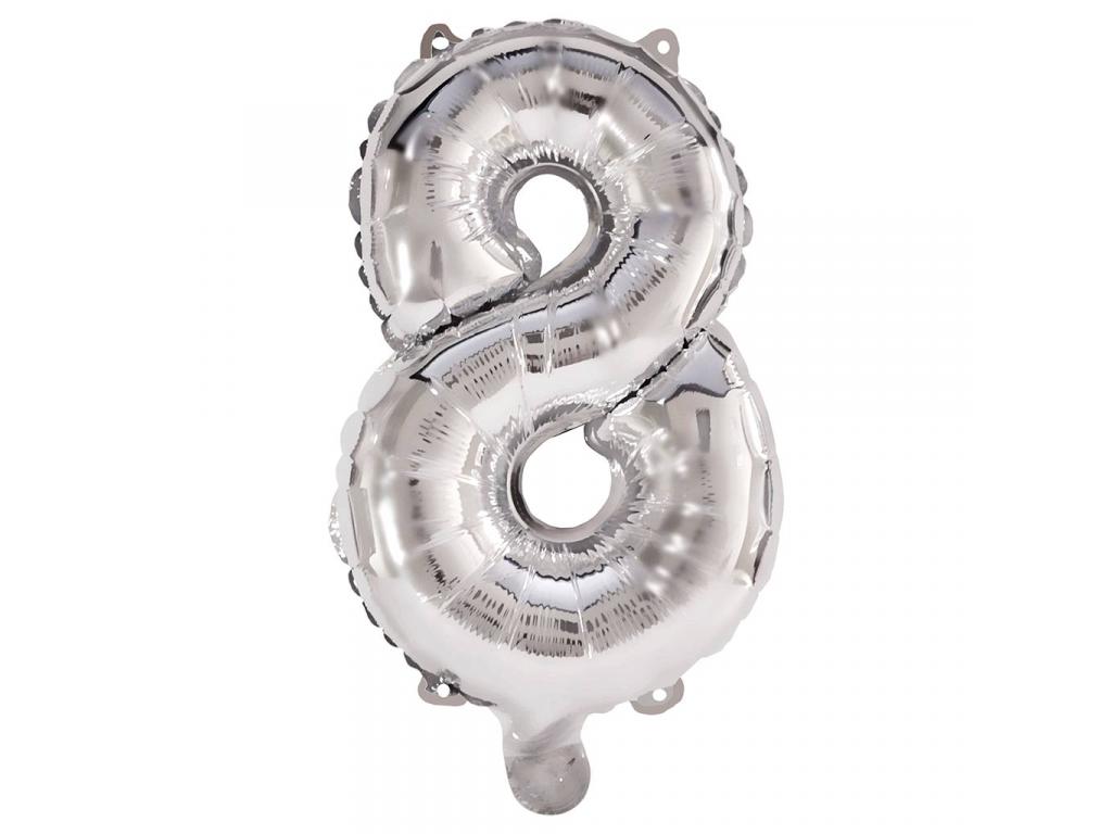 - Ezüst színű fólia lufi 8-as számmal