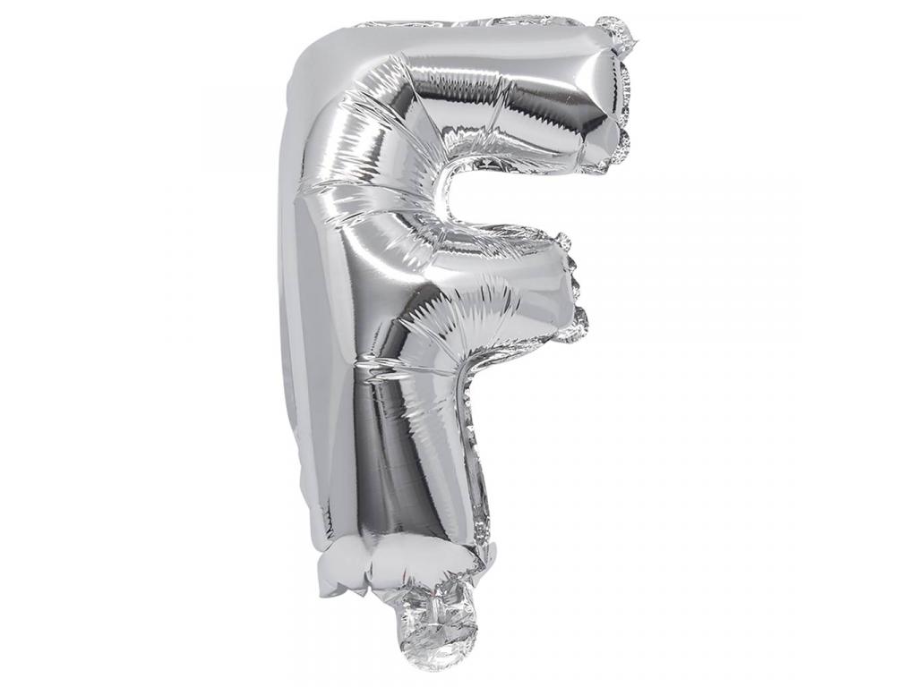 Betű formájú fólia lufi ezüst színben F betű 32cm
