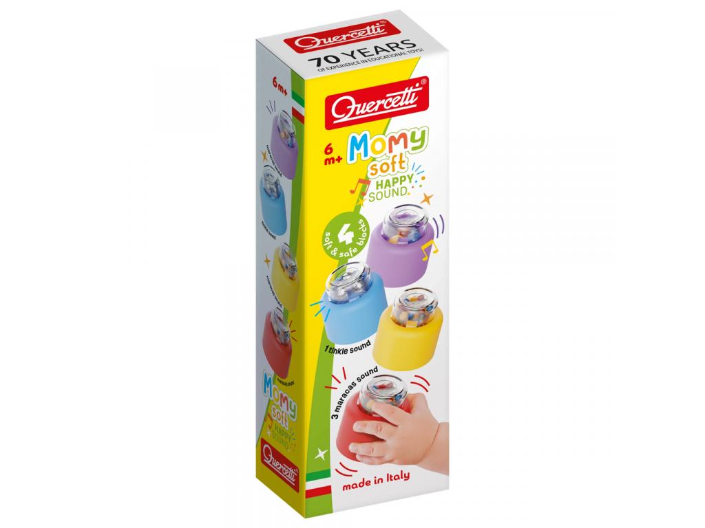 A Quercetti Momy Soft 4 darabos puha csörgős építőkocka szett tökéletes választás a legkisebbek számára, akik éppen most kezdik felfedezni a világot. Ezek a különleges építőkockák nemcsak szórakoztatóak, hanem fejlesztik a babák érzékszerveit és motoros készségeit is.