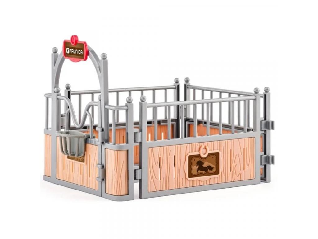 A készlet középpontjában egy tágas istálló áll, amelyben a mellékelt ló kényelmesen pihenhet. Az istálló kapui nyithatók és zárhatók, így a gyerekek valósághűen eljátszhatják a napi teendőket, például a ló kiengedését vagy visszavezetését az istállóba. A részletgazdag kialakításnak köszönhetően a játék élethű élményt nyújt, hiszen a fémhatású korlátok, a fából készült hatású falak és a piros tető mind-mind hozzájárulnak a farm hangulatának megteremtéséhez.