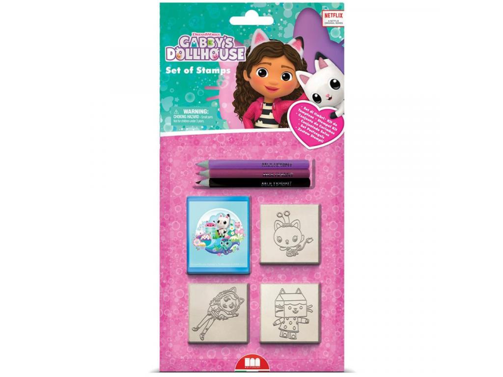 A szett három részletesen kidolgozott nyomdát tartalmaz: Gabi, Cukimica és egyéb cicás karakterek elevenednek meg a papíron minden egyes lenyomattal. A készlethez tartozik továbbá egy vidám mintás tintapárna, valamint két színes ceruza, amikkel a gyerekek kiszínezhetik az elkészült nyomatokat. A nyomdák mérete pont ideális a kis kezekhez, így könnyen kezelhetők és még az óvodás korosztály is örömét leli benne.