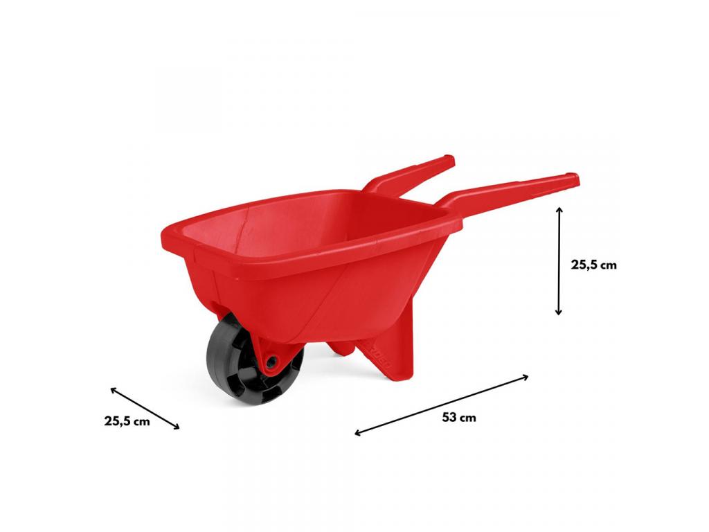 A piros 53 cm-es homokozó talicska tökéletes választás a kis kertészek és építőmesterek számára, akik szeretnek a szabadban játszani. Ez a strapabíró és könnyen kezelhető játék ideális homok, levelek, gyümölcsök, kisebb kövek vagy egyéb tárgyak szállítására, legyen szó homokozóról, kertről vagy akár a strandon való játékról.
