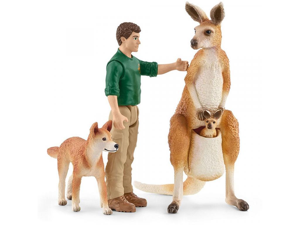 A kenguru anya élethű testtartásban áll, erszényében egy aranyos kiskenguru bújik meg, amely kivehető, így még változatosabb játékélményt biztosít. A dingo, Ausztrália vad kutyája, kíváncsian figyel és készen áll a felfedezésre. A szett része egy kalandor figura is, aki hátizsákkal, távcsővel és egyéb felszerelésekkel indul útnak, hogy tanulmányozza az állatokat és felfedezze a természet csodáit.