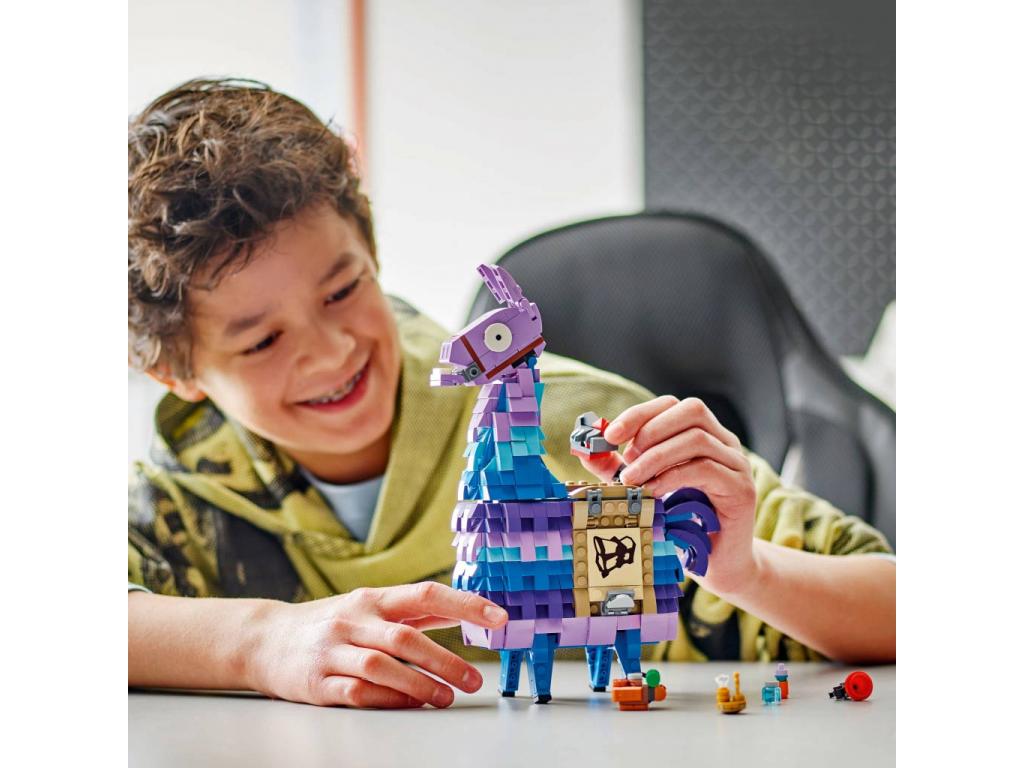 Az ifjú gamerek órákon át élvezhetik a Fortnite lámapinyáta összerakását, amelyet a LEGO Fortnite-ból Supply Llamaként ismerhetnek. A rengeteg szórakoztató részlet inspirálja a kreatív játékot, a modell feje mozgatható, a szája kinyitható, valamint egy nyereg és még sok menő felszerelés tartozik hozzá: Grappler, Slurp Juice, Rough Ruby, Back Pack, Good Luck Charm, Slap Juice és Dynamite. Ezek a LEGO Fortnite alapján készült tárgyak arra biztatják a gyerekeket, hogy a képernyőn túl, a valóságban is örökítsék meg kedvenc játékpillanataikat.