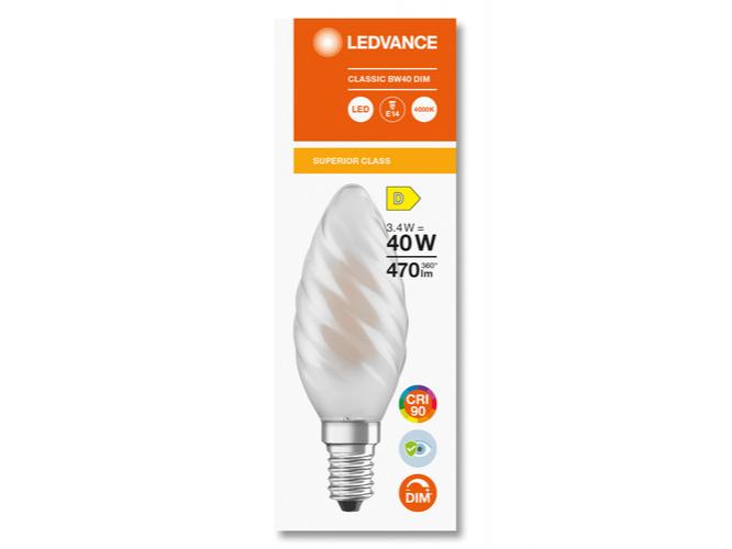 A LEDVANCE , LED CLASSIC BW DIM CRI90 S , LED égő , E14 , 3.4 W , 4000 K , Hideg fehér , Dimmelhető , IP20 , Fehér leírása: