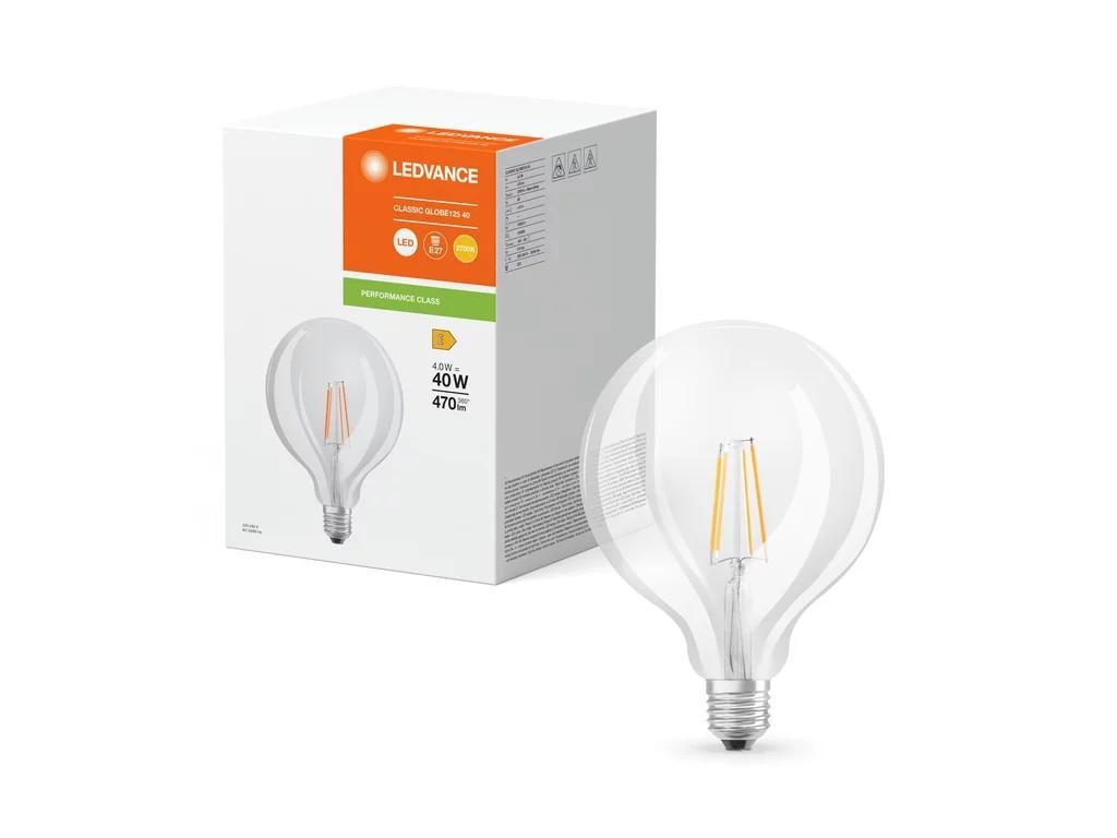 A LEDVANCE , LED CLASSIC Globe P , LED égő , E27 , 4 W , 2700 K , Meleg fehér , IP20 , Átlátszó leírása: