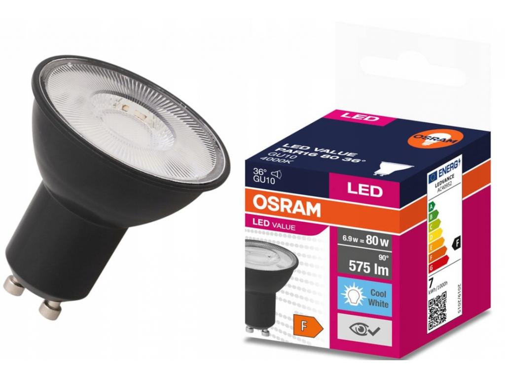 Az OSRAM , LED VALUE PAR16 BLACK , LED égő , GU10 , 6.9 W , 4000 K , Hideg fehér , IP20 , Fekete leírása:
