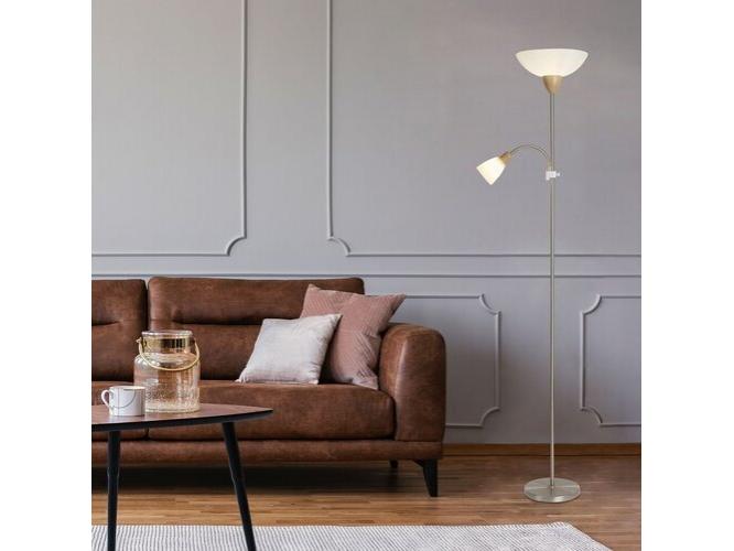 A Diana állólámpa hagyományos stílusával szinte bármely enteriőr praktikus kiegészítője lehet. Elsősorban a nappaliba ajánljuk, ahol elhelyezhetjük egy sarokban, a kanapé mellett, de a hálószobában, az ágy mellett is jó szolgálatot tehet. A fémből készült, szatinkróm lámpatestet egy nagyobb és egy kisebb opál üveg búra egészíti ki. A lámpa két darab, egyenként legfeljebb 40 W teljesítményű fényforrással használható. A nagyobb búra alatt egy E27-es foglalat bújik meg, melybe G45-ös típusú fényforrást ajánlunk. Az olvasókarhoz tartozó fényforrás foglalata E14-es típusú. Az állólámpa búrájának átmérője 285 mm, az olvasókar kinyúlása 300 mm, a lámpa teljes magassága 1775 mm. A vezetékes kapcsolóval szerelt Diana lámpát fényforrás nélkül szállítjuk.
