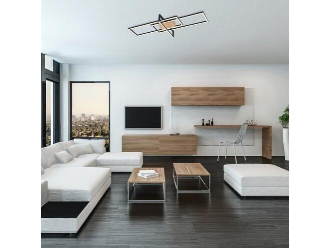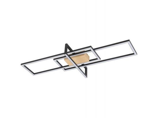 A szögletes formák kombinációjából álló Ashton mennyezeti lámpa jellegzetes és igazán trendi darabja lehet modern nappalink, étkezőnk vagy hálószobánk berendezésének. A fémből készült, matt fekete lámpatestet fehér műanyagbúrák egészítik ki. A lámpa bükkszínűre festett, szögletes dísztalp segítségével rögzíthető a mennyezetre. Az Ashton megjelenését a három egymást metsző, téglalap alakú elem teszi egyedivé. A mennyezeti lámpa beépített LED fényforrással rendelkezik, amelynek teljesítménye 35 W, fényereje 1800 lumen, színhőmérséklete pedig 3000 K. A mennyezeti lámpa meleg fehér fénye otthonos, meghitt hangulatot teremt a szobában. Az Ashton dimmelhető, azaz fényereje három lépésben, fali kapcsoló segítségével változtatható. A lámpa méretei a következők: szélessége 1000 mm, magassága 400 mm, mennyezettől mért távolsága 110 mm. Erre a modellre 5 év garanciát vállalunk.