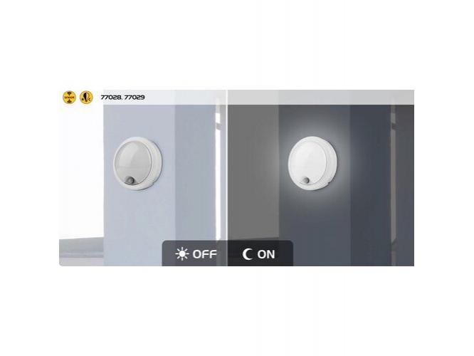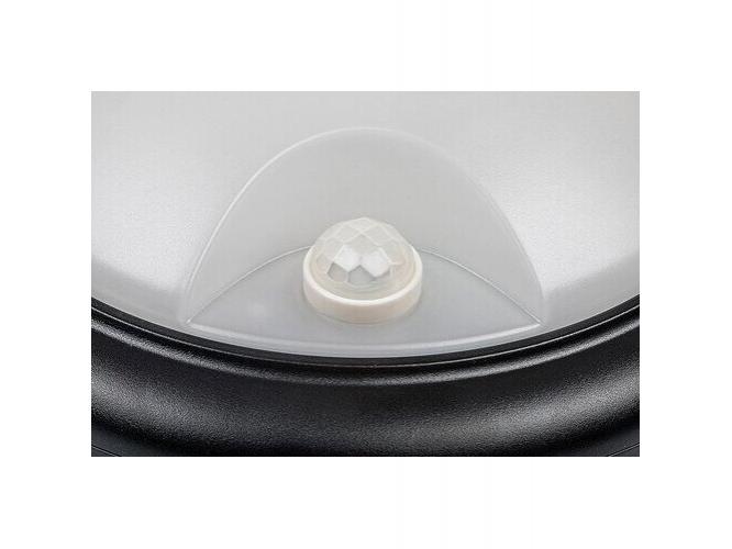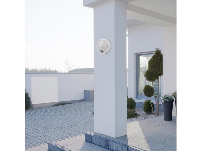 A modern stílusú Hitura kültéri mozgásérzékelős fali lámpa remek választás a teraszra vagy a ház külső falára. Jó szolgálatot tehet a bejárati ajtó közelében, vagy biztonságosabbá teheti a közlekedést a ház mellett vezető gyalogút megvilágításával. Ez a kerek modell, amely fehér színével diszkréten belesimul a házfal jellemzően világos színébe, teljes egészében műanyagból készül. A lámpa az F energiaosztályba tartozó beépített LED fényforrással rendelkezik, amelynek teljesítménye 15 W, fényereje búrával 1350 lumen, búra nélkül 1800 lumen, színhőmérséklete pedig 4000 K. A természetes fehér fénnyel világító fényforrás élettartama 25 000 óra. Az intelligens szenzor, amely a lámpa fényerejét a körülményeknek megfelelően változtatja, 6ą2 méter távolságból, 120°-os látószögben érzékeli a mozgást. A Hitura átmérője 180 mm, faltól mért távolsága 70 mm. A kültéri lámpa IP54-es védettsége garantálja, hogy por ellen, valamint bármilyen irányból fröccsenő víz ellen védett.