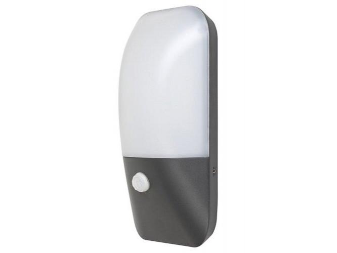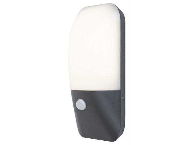 Az antracitszürke és fehér színű, opál búrával ellátott, mozgásérzékelős Ecuador kültéri fali lámpa a modern stílus képviselői közé tartozik. A beépített LED fényforrás 4000 K-es színhőmérsékletének megfelelően természetes fehér fényt sugároz. Az energiatakarékos fényforrás teljesítménye 11W, fényereje 800 lumen, élettartama pedig 30 000 óra. A lámpa anyaga fém és műanyag, méretei pedig a következők: szélessége 120 mm, magassága 220 mm, faltól való távolsága 72 mm. A mozgásérzékelő 6 méter távolságból, 120°-os látószögben érzékeli a mozgást, nappali fényben nem működik. Az IP54-es védettség garantálja, hogy ez a kültéri lámpa káros porbehatás, valamint bármilyen irányból fröccsenő víz ellen védett. Az Ecuador mozgásérzékelős fali lámpára 5 év garanciát biztosítunk.