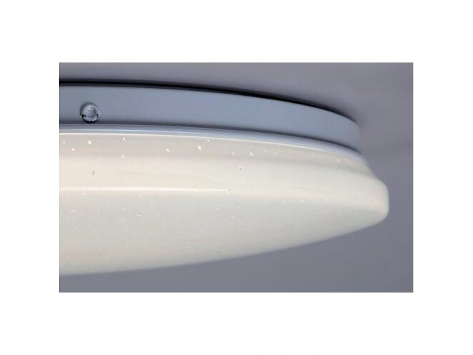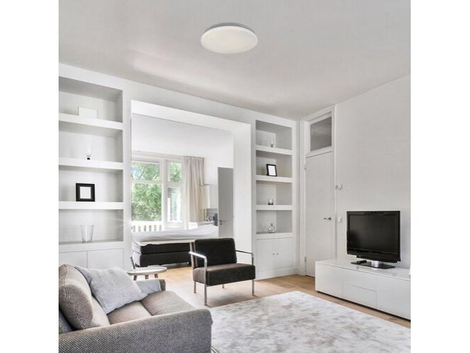A csillogó effekttel ellátott kerek Vendel mennyezeti lámpát egyszerű, letisztult dizájn jellemzi, amelynek köszönhetően ez a modell szinte bármely modern nappali vagy hálószoba berendezésének diszkrét, praktikus darabja lehet. Ha központi fényforrást keresünk a szobába, a Vendel nagy méretével és jelentős fényerejével kitűnő választás lehet. A fémből készült fehér lámpatestet fehér műanyagbúra egészíti ki. A Vendel a G energiaosztályba tartozó beépített LED fényforrással rendelkezik, amelynek a teljesítménye 24 W, fényereje búrával 1970 lumen, búra nélkül 2400 lumen, élettartama pedig igazán fantasztikus: 50 000 óra! A 4000 K színhőmérsékletű fényforrás meleg fehér fénnyel világít, ezért ez a mennyezeti lámpa különösen jó választás a nappaliba, ahol modern, tiszta hatásával kiválóan támogatja az esti órákban végzett közös tevékenységeket. A Vendel mennyezeti lámpa méretei a következők: átmérője 375 mm, beépítési átmérője 355 mm, mennyezettől mért távolsága pedig mindössze 55 mm.