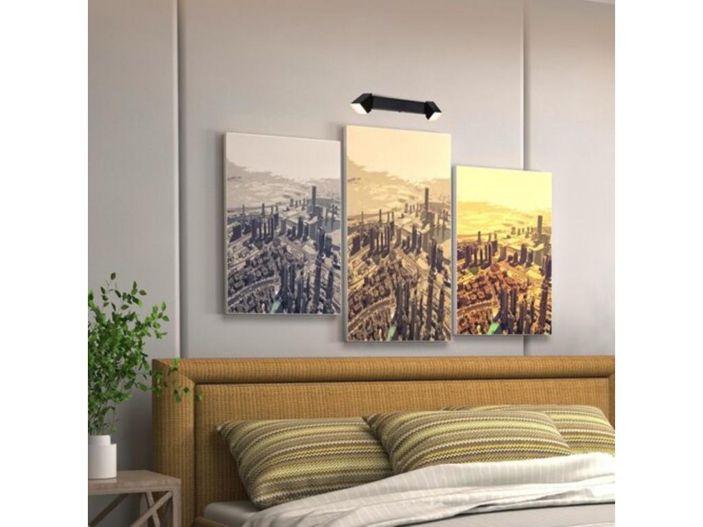 A modern stílusú Kessy kettes fali lámpa praktikus választás a nappaliba vagy a hálószobába. Az enyhén lefelé döntött lámpafejekkel és két billenőkapcsolóval szerelt modell fémből, fekete színben készül, és fehér műanyagbúrák egészítik ki. A két lámpafejet összekötő téglalap alakú lámpaelem dísztalpként is funkcionál, azaz ennek segítségével rögzíthetjük a lámpát a falra. A szögletes formákból építkező lámpa meleg fehér fényt sugároz, amely elősegíti az otthonos, meghitt hangulat megteremtését, pihenteti a szemet, és ideális a kikapcsolódáshoz. A Kessy a G energiaosztályba tartozó beépített LED fényforrással rendelkezik, amelynek teljesítménye 8 W, fényereje búrával 320 lumen, búra nélkül 550 lumen. Az izzó színhőmérséklete 3000 K, élettartama 30 000 óra. A fali lámpa méretei a következők: szélessége 350 mm, magassága 50 mm, faltól mért távolsága 80 mm.